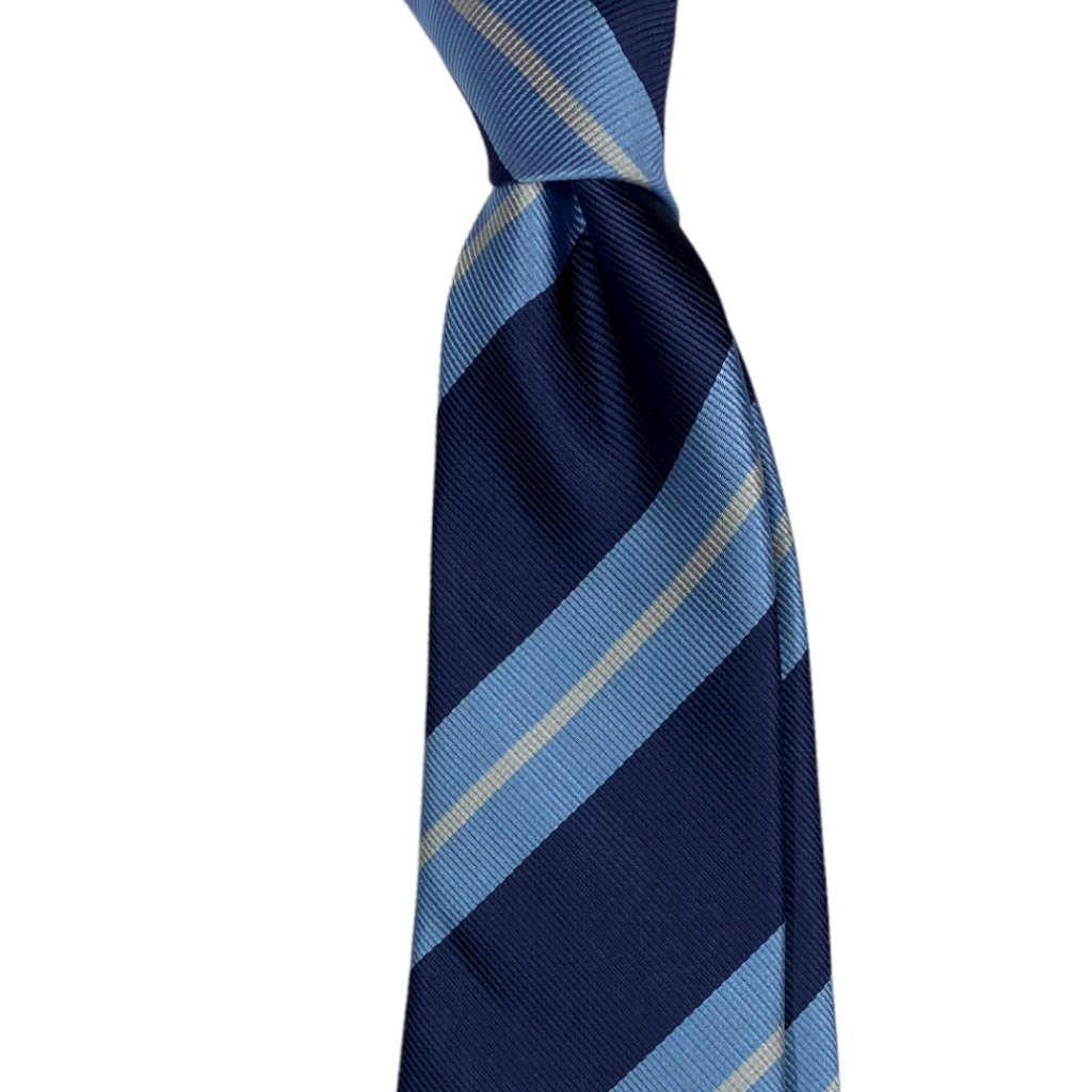 Tmavě modrá kravata s bílými a modrými proužky