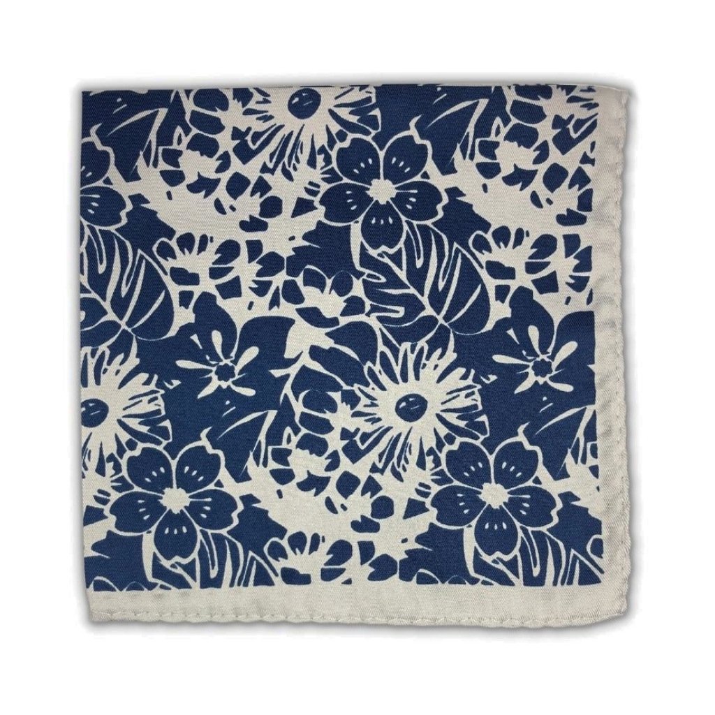 Stříbrný kapesníček do saka Flowers s modrými květinami