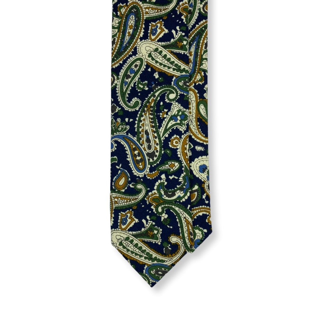 Tmavě modrá bavlněná kravata se zeleným paisley