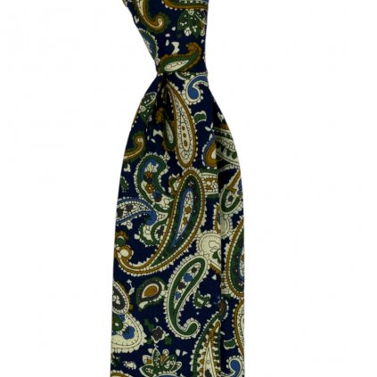 Tmavě modrá bavlněná kravata se žlutým paisley