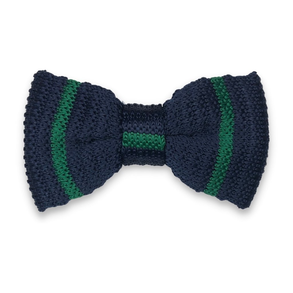 Pánský tmavě modrý pletený motýlek se zelenými proužky