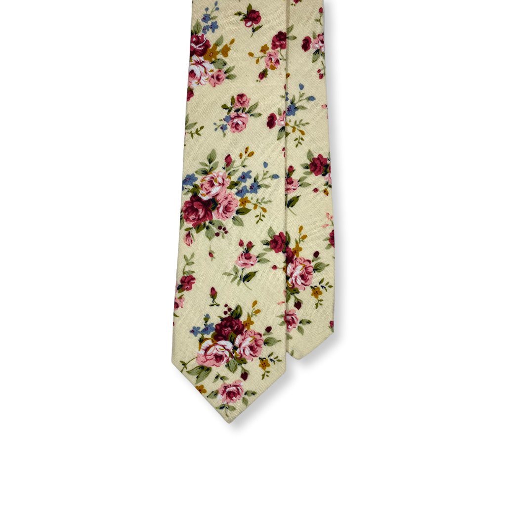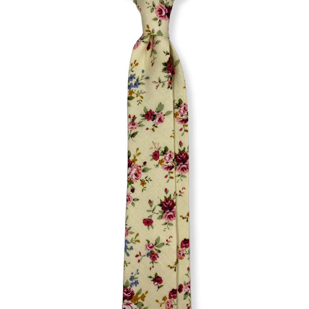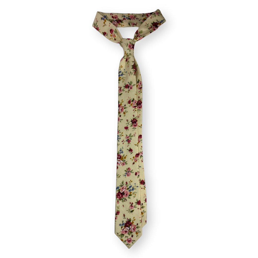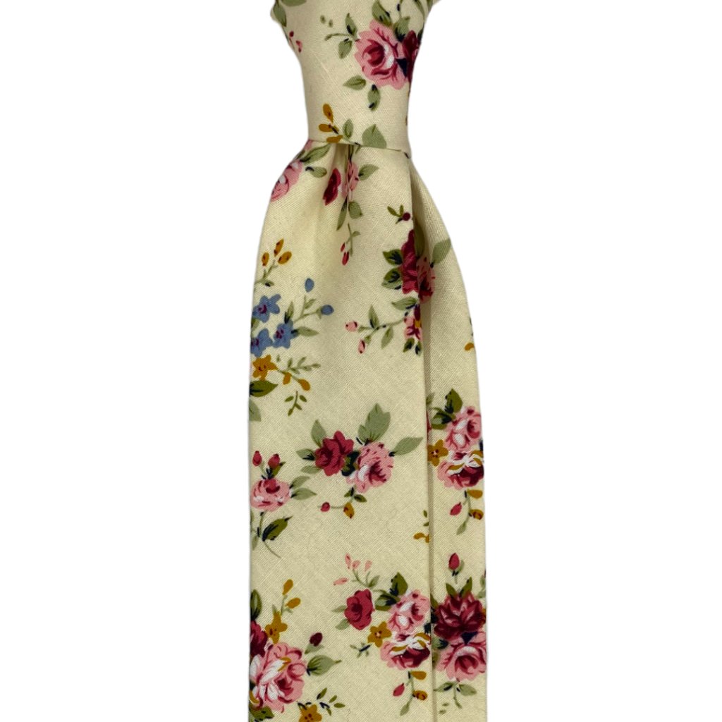 Smetanová bavlněná kravata s květy