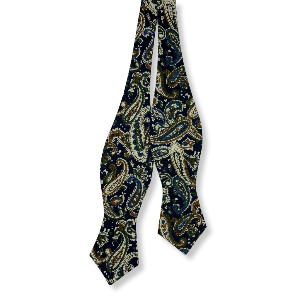 Modrý bavlněný vázací motýlek s paisley Diamond